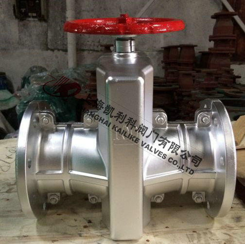 GJ41X鋁合金管夾閥由上下鑄鐵、鋁合金、不銹鋼閥體,橡膠管套、大小閥桿閘板、上下導柱等零件組成。當順轉手輪時,使大小閥桿同時帶動上下茬板、壓縮管套、進行關閉,反之即行開啟。這樣,閘板在導柱之間上下往復完成閥門開閉工作,另因橡膠管套或承力小,所以在開閉時,操作人員旋轉輪時只要感到適量抵觸,均達到開閉極點。切勿盡力多人補助,禁用其他工具開閉。