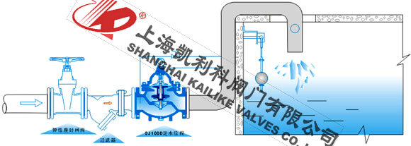100D定水位閥是一種隔膜式調(diào)節(jié)水箱和水塔液面高度的閥門。閥門由浮球控制,當(dāng)液面達(dá)到設(shè)定高度時(shí)閥門通過相關(guān)結(jié)構(gòu)將信號傳遞給水泵,水泵停止供水;當(dāng)液面低于社定位置時(shí)水泵自動啟動供水。